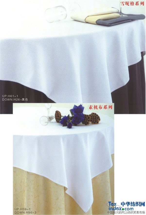 主要銷售客房;平紋 中,高檔【多種顏色40支-60支緞條】床單,被罩,枕套,枕芯,被子,墊被,床裙,床罩,床尾墊,浴簾以及毛巾系列。 餐飲系列;多種顏色中高檔 【純棉 方格 化纖 花色圖案】臺布 口布 臺墊臺裙 臺呢 椅套 印花臺布具有不褪色、耐洗、耐磨、色澤艷麗、平整挺括且使用壽命長的特點,印花臺布規(guī)格2.8m,表面繡有花朵圖案作裝飾,造型典雅、大氣,精美時尚,使整體更加美觀,深受廣大消費者的喜愛。白色印花臺布采用優(yōu)質(zhì)化纖材料制作而成,款式新穎、物美價廉,是酒店、賓館、家庭等場所的必備用品之一。本公司生產(chǎn)設(shè)備先進(jìn),工藝精良擁有多年的專業(yè)生產(chǎn)經(jīng)驗 深受廣大消費者和采購單位的好評和信賴。