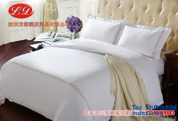 深圳龍都酒店床上用品批發網公司注重企業文化建設,嚴格的質量把關,優秀的管理、設計、營銷人才,完善的服務體制,全力的打造著酒店床上紡織用品專業生產,其產品有床單、被單、被子、被套、枕套、枕頭、枕套、枕芯、的廠家,我司生產酒店床上用品品種齊全而且多樣化,酒店不只是單一選擇,我司 研發了多種酒店床上用品專業生產各行業床上用品:酒店被單、全棉被單,賓館被套,100%全棉貢緞皇家客房用品,客房布草,酒店床上用品,等產品的多元化現代企業。本公司還推出了多樣化選擇,多樣化系列全棉酒店床上用品系列、貢緞系列、3CM緞條系列、40S床上用品系列、美容院床品系列等 歡迎廣大酒店老板前來咨詢,訂購。祝廣大客戶生意興隆!