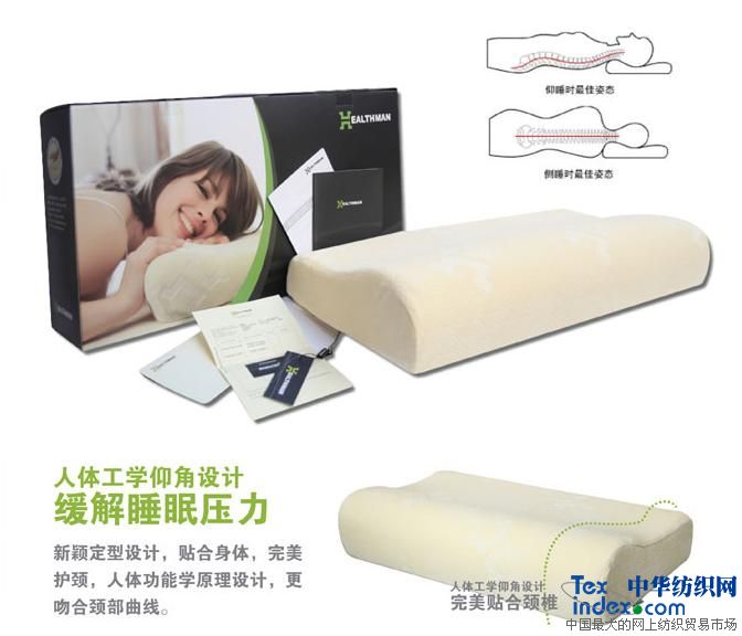 HEALTHMAN枕頭按照人體工學(xué)設(shè)計,完全貼合頭部、頸部及肩部曲線,使頸椎保持自然彎曲狀態(tài),減少落枕可能并防治打鼾。同時配合HEALTHMAN材質(zhì)的溫感減壓性能,HEALTHMAN枕頭能夠有效吸收人體壓力,將頸部與枕頭之間的壓力化解為零,減少酸痛點的產(chǎn)生,促進血液循環(huán),使大腦保持有氧狀態(tài),有助于緩解疼痛和提高睡眠質(zhì)量。另外,HEALTHMAN材質(zhì)的細胞結(jié)構(gòu)是開放式的,由于每個細胞單位間是相互連通的,它能夠讓空氣在整個枕頭間流通,因此透氣性能非常好,比起普通枕頭來,它會讓您感到更加清爽舒適。而且這種材質(zhì)能抑制霉菌生長,驅(qū)除霉菌繁殖生長產(chǎn)生的刺激氣味。